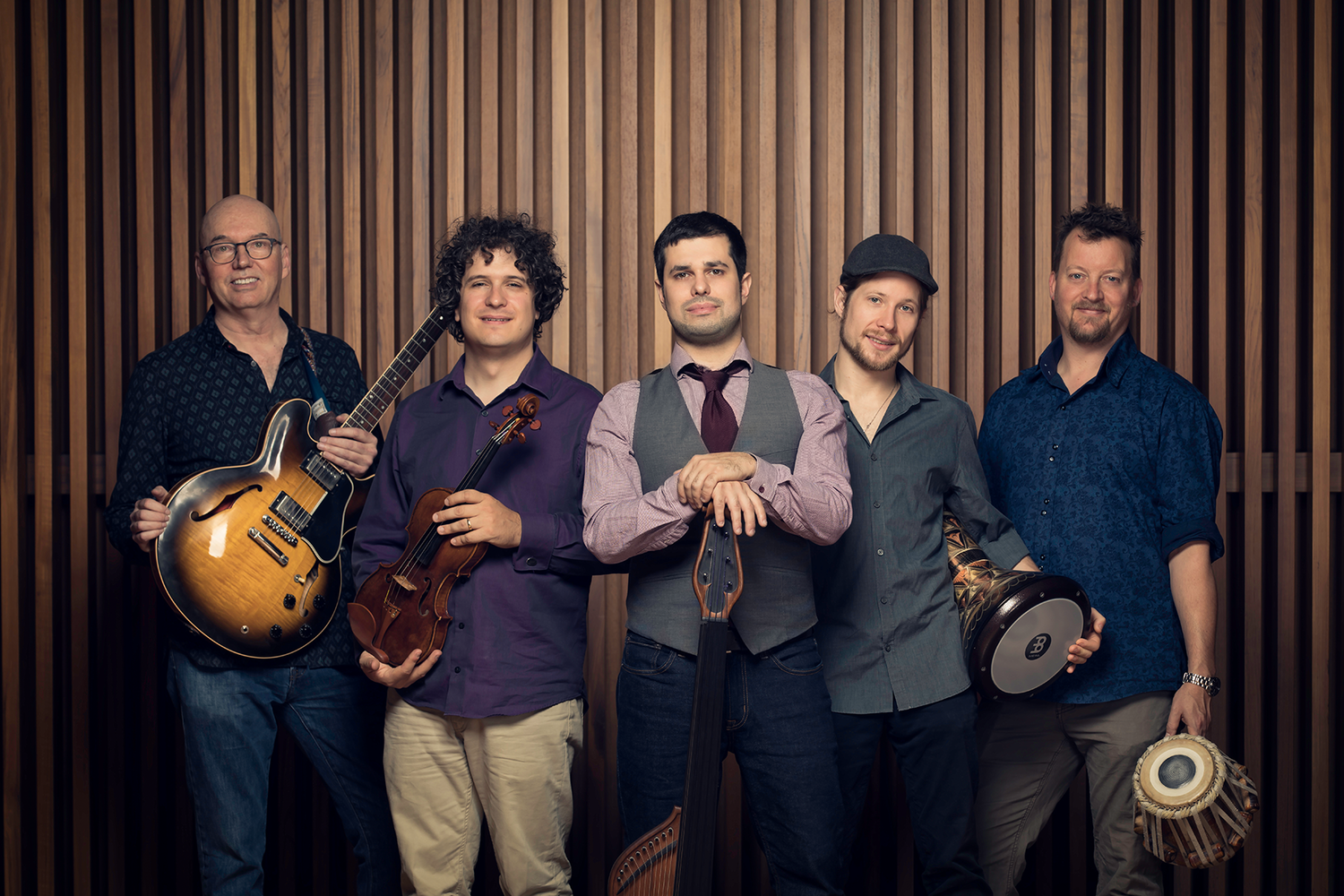 Justin Gray & Synthesis is a contemporary world jazz ensemble that explores a captivating cross-cultural blend of Indian and western music. The ensemble features Justin Gray on Bass Veena & Electric Bass, Ted Quinlan on guitar, Drew Jurecka on Violin, Ed Hanley on tabla and Derek Gray on drums, percussion & Tibetan singing bowls.